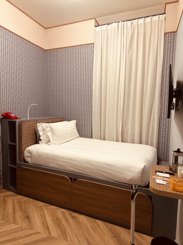 到了二楼的房间,不得不感叹这单间比我抱怨过的在巴黎住的Da Vinci酒店客房还袖珍。小就小点呗,也就我一人打发一晚,反正明天我就会搬去另一个住处迎接我闺蜜的到来。