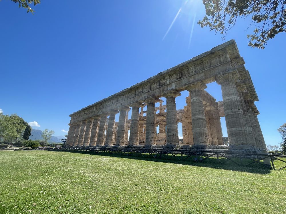 在开阔草地上,这几座两千五百年前的石柱仍然挺立,仿佛时间停滞,让人直观感受到古希腊建筑的力量与比例之美。