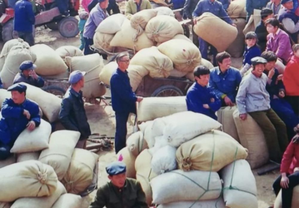 “ 不用看了。回去晒干再来。” 粮站的工作人员将烟别在耳后,走去下一辆板车。