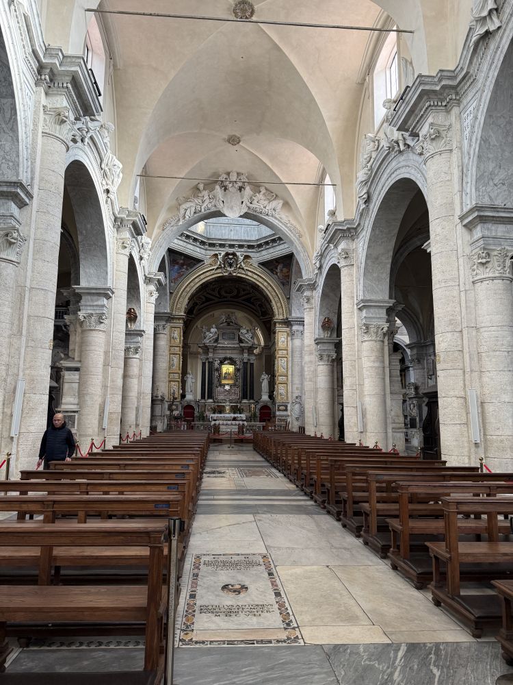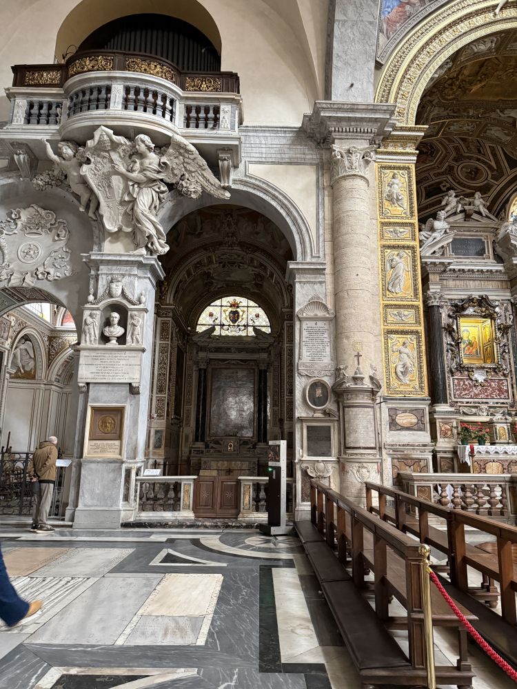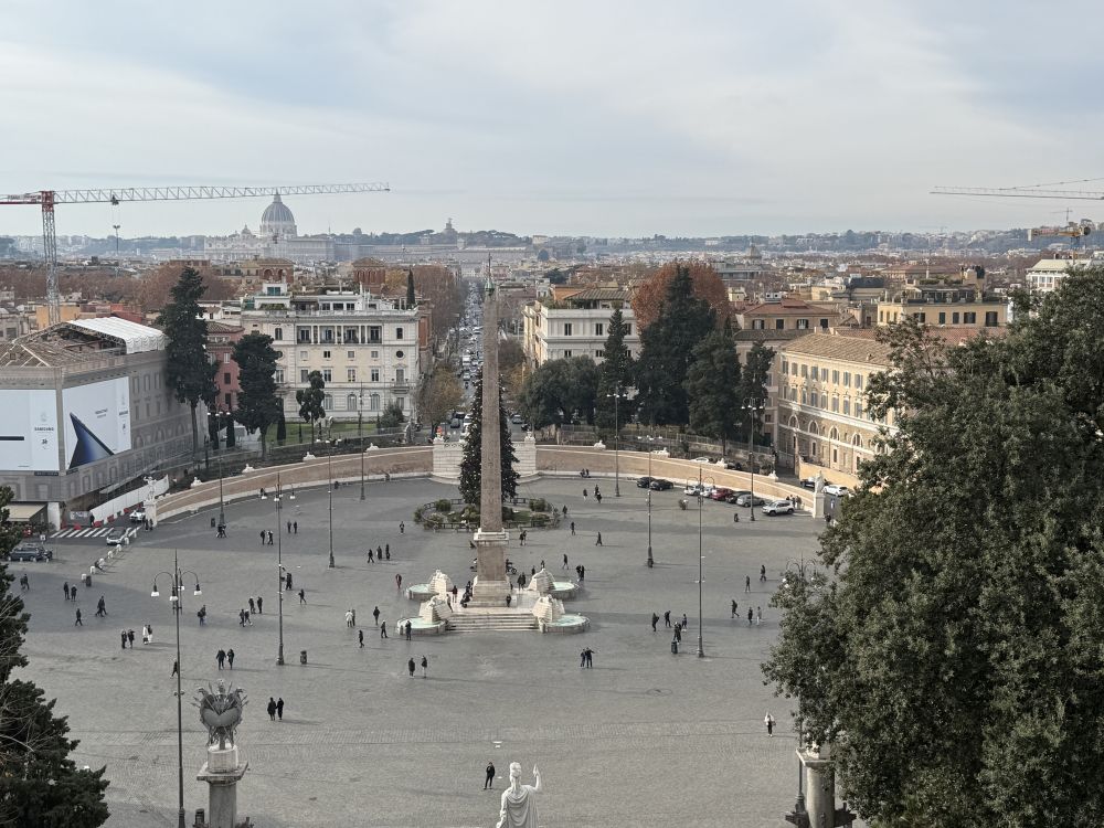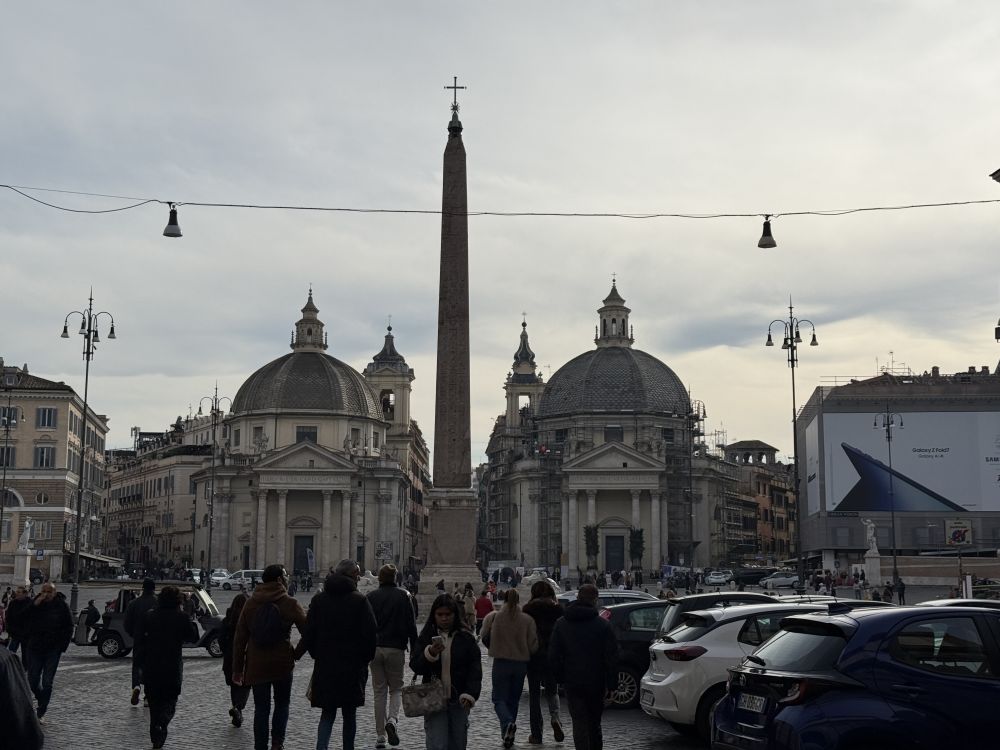 周一开始要上班了直到圣诞节前一天公司关门,所以我们每天的活动要在下午二三点左右结束。然后我可以休息一两个小时再上班。从圣彼得大殿出来,我们决定去人民广场,然后再去博尔盖塞公园逛逛。我2022年来的时候报了一个庞贝和波斯塔诺的一日游,就是一早在人民广场集合。我一日游的前一天先到人民广场踩点,但当时的广场边的教堂没开门。这次赶上开门,就进去看,顺便坐下来休息一下。