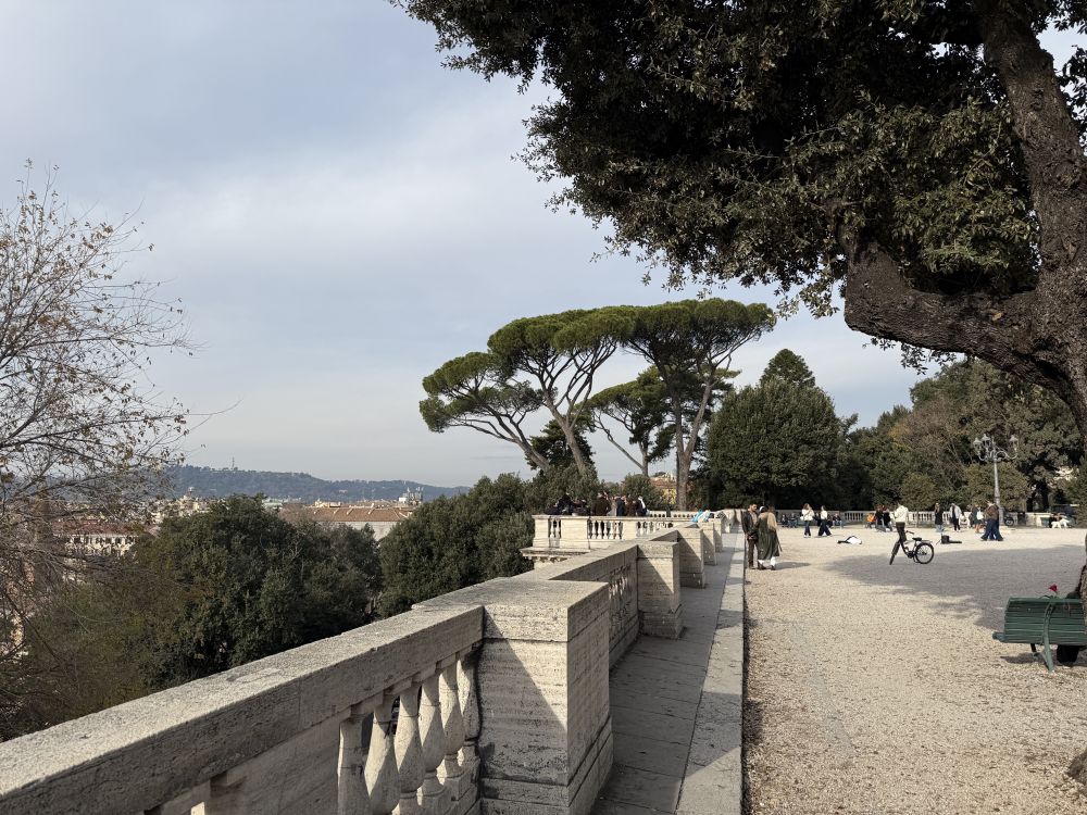 上到顶端是一个观景平台,有许多人在上面休闲,从这里就可以走到博尔盖塞公园。