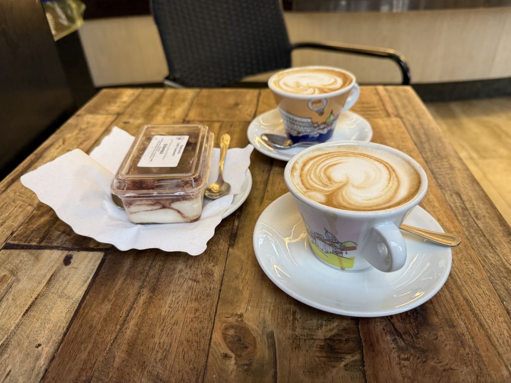 回去的路上想着歇歇脚,找了一个咖啡店坐下喝一杯卡布奇诺。结果网上查了查,说是他们的提拉米苏也很有名,所以也买来尝尝吧。无论我多么喜欢卡布奇诺,早饭以后也不怎么敢喝了,也就偶尔喝喝,否则会影响晚上睡眠的。