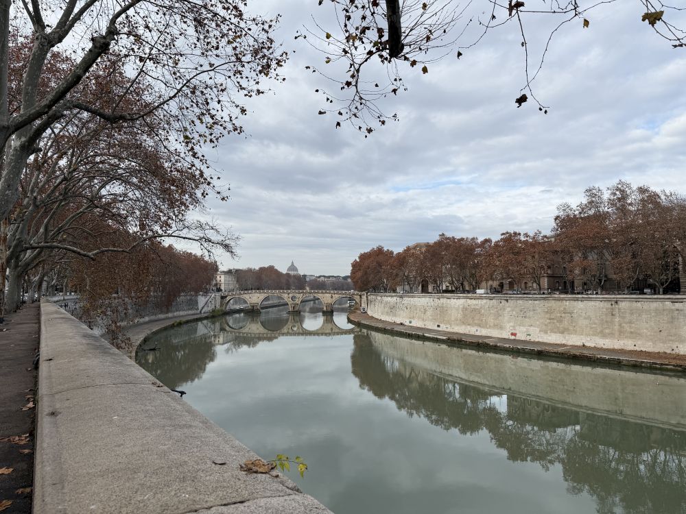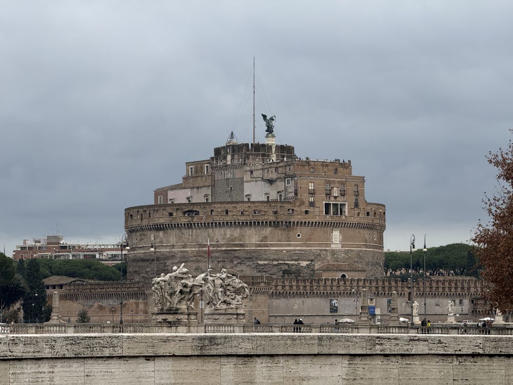沿着台伯河走,从河对岸看圣天使堡。今天又是一个阴天,最近总是晴一天,阴一天的。
