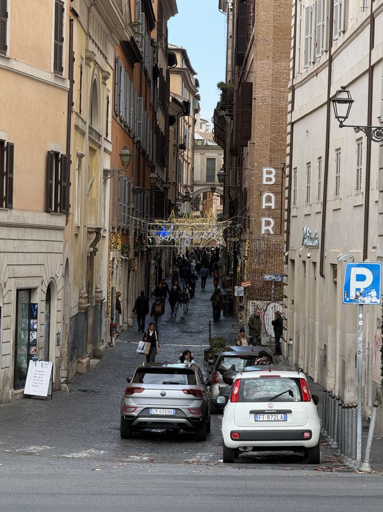 典型的罗马街道,狭窄悠长。今天又是悠闲的一天,马上到周末了,可以出去逛逛,下周再上两天班就可以一直休假玩到过完二零二六年元旦,一月十号才回美。想去的地方太多,争取未来几年一个一个从我的愿望清单上划掉。旅行看世界真的是一个非常个人,主观的事情,有人喜欢就有人不喜欢,无关对错,纯粹个人的选择而已。