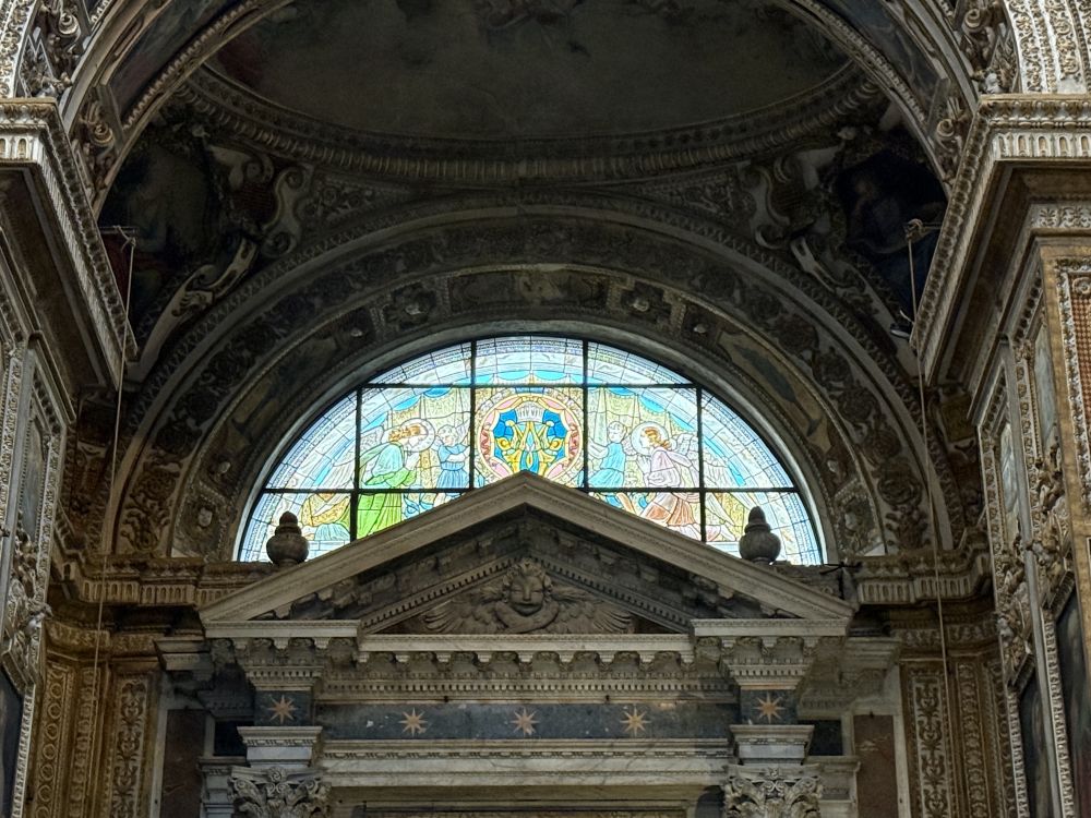 路过这个教堂,进去看了,这个名字记得,金山圣伯多禄堂(San Pietro in Montorio),后来还查了查,这个教堂还是有一定知名度的。它是一座文艺复兴时期的教堂,始建于公元9世纪,现在的建筑是由西班牙国王和王后在15世纪末在圣伯多殉难的遗址上重建的。它的庭院内有一座著名的小堂‘Tempietto'。