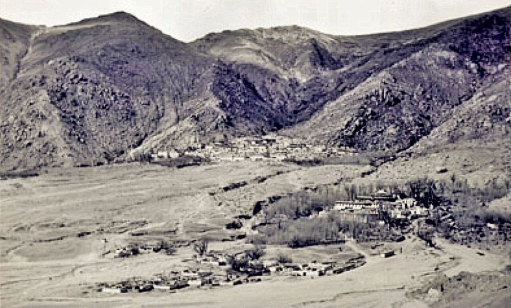 弗·斯·查普曼摄于1936年,画面中左上为哲蚌寺,右下为乃琼寺