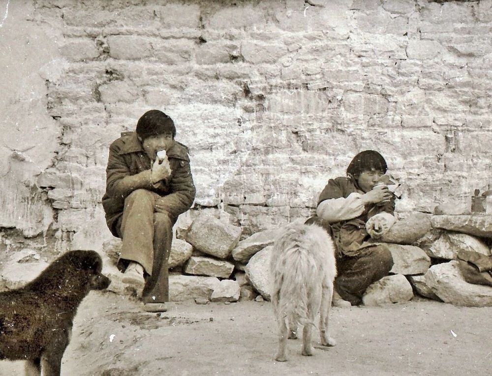至今还记得那会儿去远郊写生的准备程序:提前一天,在单位伙房买好几个馒头,切开、夹上豆腐乳,偶尔放上点当年的奢侈品白砂糖,难得几次还有平常攒下的部队压缩饼干,用厚厚的棉外套包好军用水壶来保温……一大早骑自行车从市里出发,沿青藏公路到西郊水泥厂旁,抽烟、喝水,歇口气。