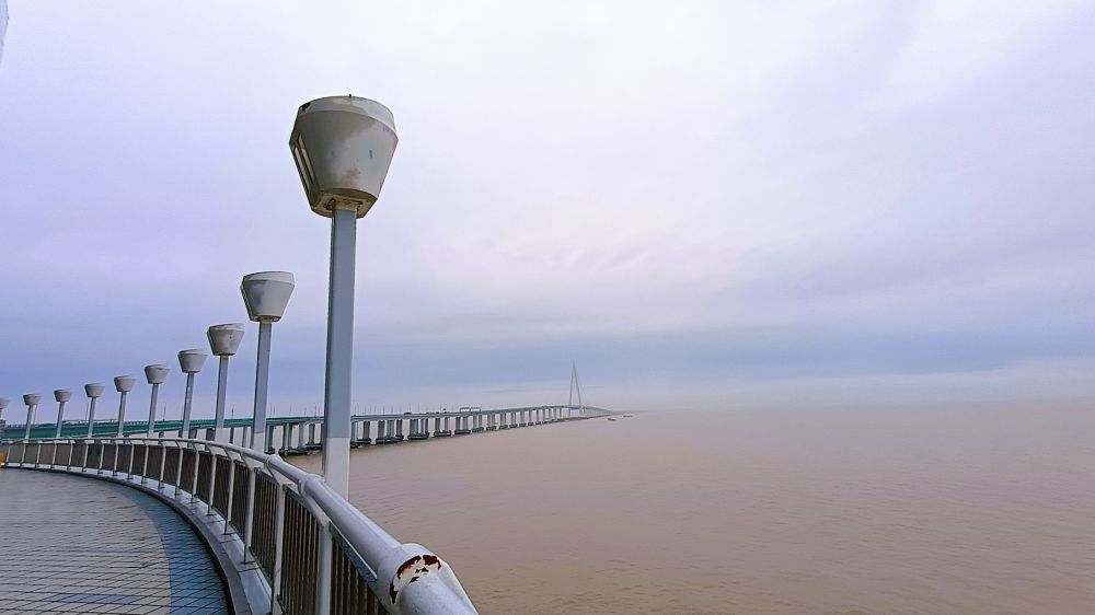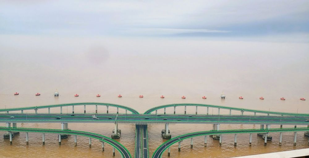 出上海一个多小时后,来到了杭州湾跨海大桥,该桥连接了浙江省内的嘉兴市和宁波市,桥长约36公里。