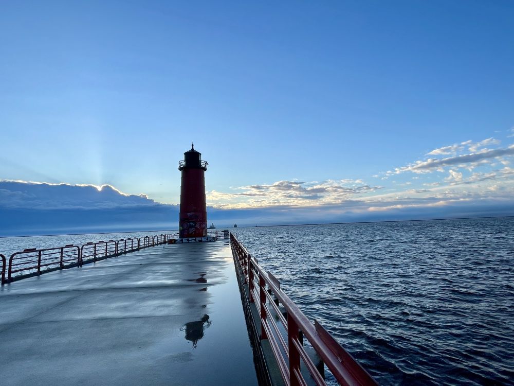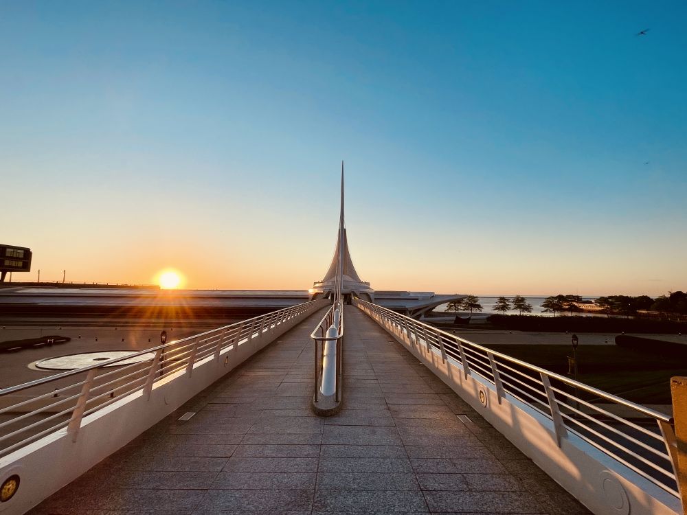 河滨步道—密尔沃基河步道系统始于1993年,穿过市中心和历史悠久的第三区,直至密歇根湖。早上从万豪居家酒店出发,赶在日出前到湖滨。