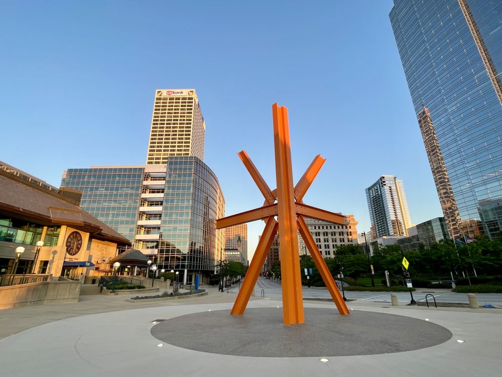 威斯康星大道尽头就是密歇根湖的密尔沃基艺术博物馆和米字钢雕塑《召唤》