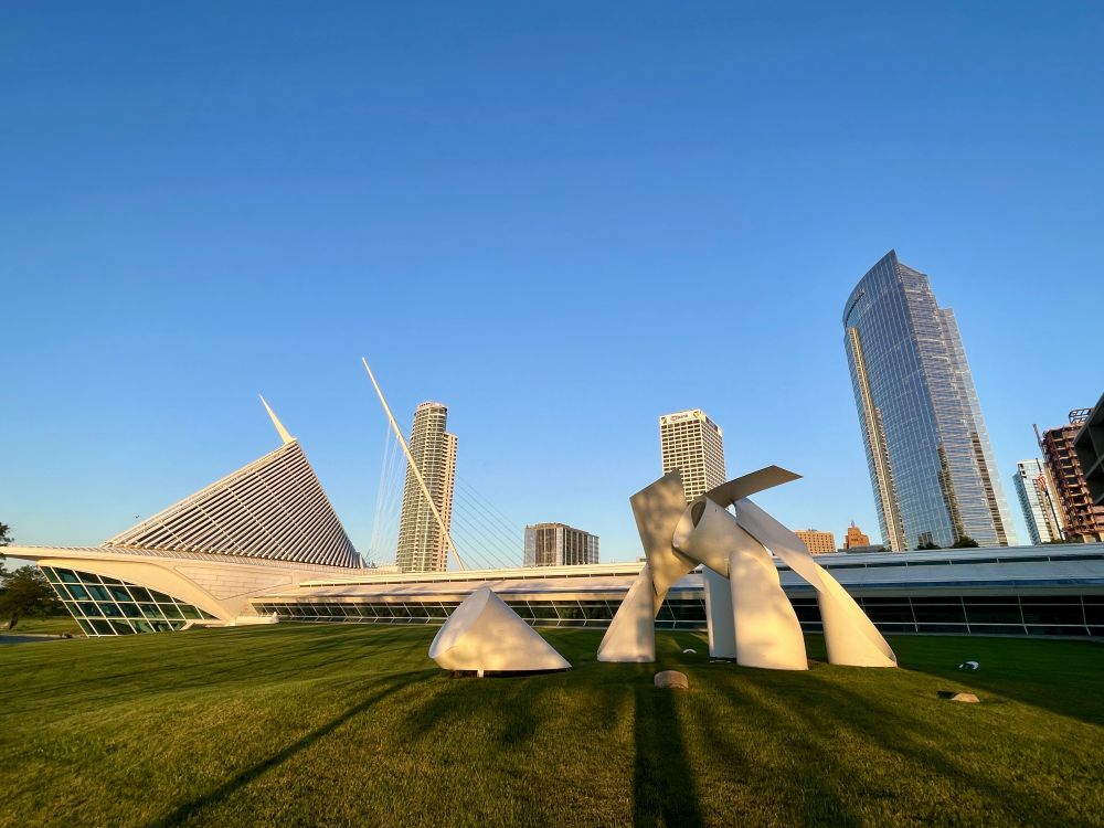 密尔沃基最引人注目、最具视觉冲击力的地标属于密尔沃基艺术博物馆,坐落于密歇根湖西岸,始建于1888年,后由世界著名的创新建筑师圣地亚哥·卡拉特拉瓦改建,是一座惊艳的建筑美学作品,尤其是它价值1亿美元的翼楼—博物馆又像一个可移动的遮阳板,展开时类似于鸟翼,也像一具巨型鲸尾,建筑顶部两侧的钢结构羽翼会像翅膀一样慢慢张开,像一只展翅飞翔的白天鹅。全馆共四层40个画廊,收藏品极为丰富,展出19世纪德国表现派、美国现代装饰艺术、及威州本土艺术家的作品,还有毕加索的原作。2024年,密尔沃基艺术博物馆被《今日美国》的读者和编辑评选为全国第八大艺术博物馆。