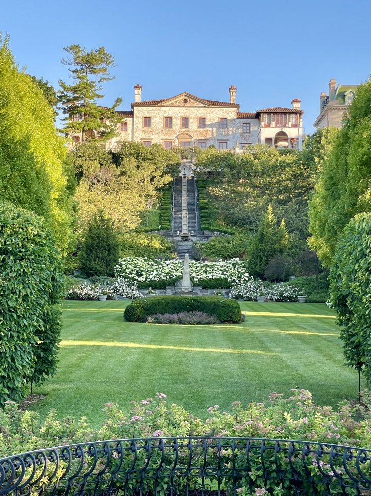 劳埃德·史密斯(1883-1944)是史密斯公司总裁。在一次意大利之行,从伦巴第的奇科尼亚·莫佐尼别墅(建于1560年代)的建筑和水阶梯获得灵感,委托建筑师大卫·阿德勒设计新家。设计整体为一个围绕开放中央庭院的矩形。墙壁由红砖制成,涂成白色。屋顶覆盖桶形瓦。住宅包括带横梁天花板的餐厅,配壁炉和榉木地板的客厅、图书馆。别墅周围的悬崖被梯田、花园、“水阶梯”、鱼塘和两个秘密花园环绕。花园栽种糖枫林和紫丁香篱笆,地上铺白色碎石。室内装饰的铁器艺术品由来自奥地利的铁匠西里尔·科尔尼克打造。