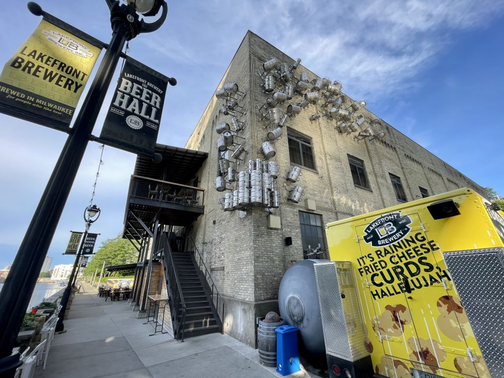 密尔沃基拥有多家世界级的啤酒公司,创建于1987 年的Lakefront啤酒公司,每天有导游带领游览酒厂生产车间、品尝啤酒,一直是密尔沃基最受欢迎的旅游项目。 公司外墙装饰着各种啤酒桶。