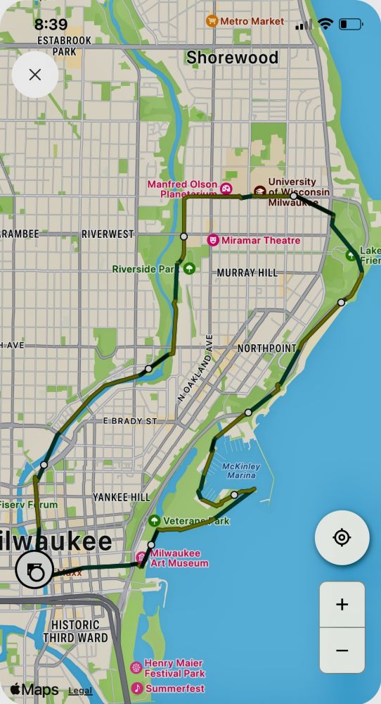 独立日假期,从市中心老城的万豪居家酒店出发,跑步探访密尔沃基的几个主要地标—历史街区、玻璃天桥系统、博物馆、德式建筑、滨河步道、大学城、模仿柏林的市政厅、尖顶教堂、奇幻迷人的水塔、麦克阿瑟纪念公园、湖湾海关灯塔、母鸭格提的传奇筑巢……全程16公里。