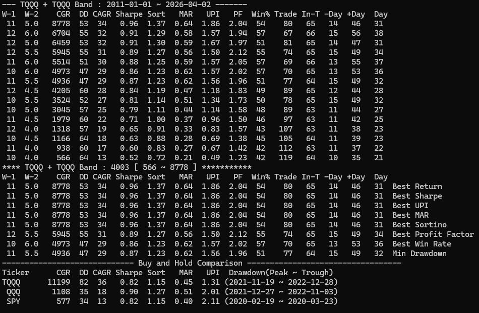 飘带法的四种方法中,回测TQQQ,效果最好的是Moving Average Envelope, 下面是回测结果: