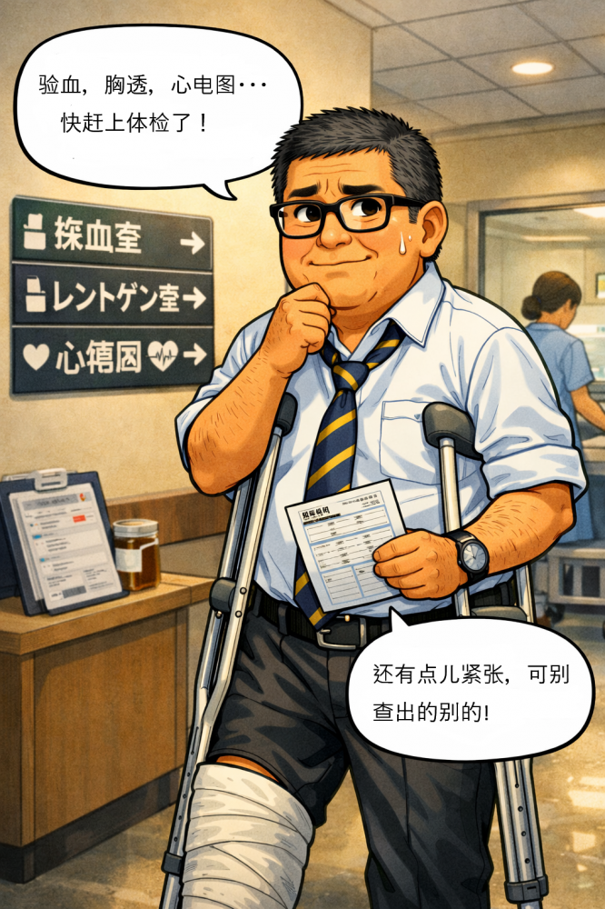 接诊护士开始带着我做各种检查,查血/验尿/心电图/胸透···· 还挺麻烦,尤其是我还是架着双拐。折腾了一个小时,总算是进了病房。