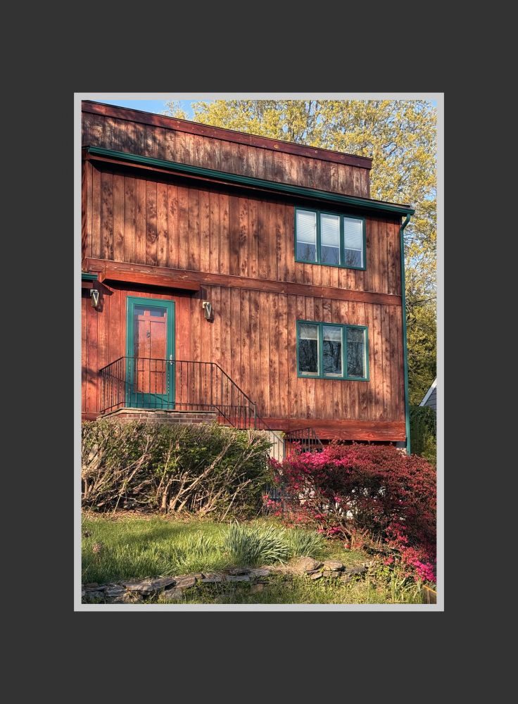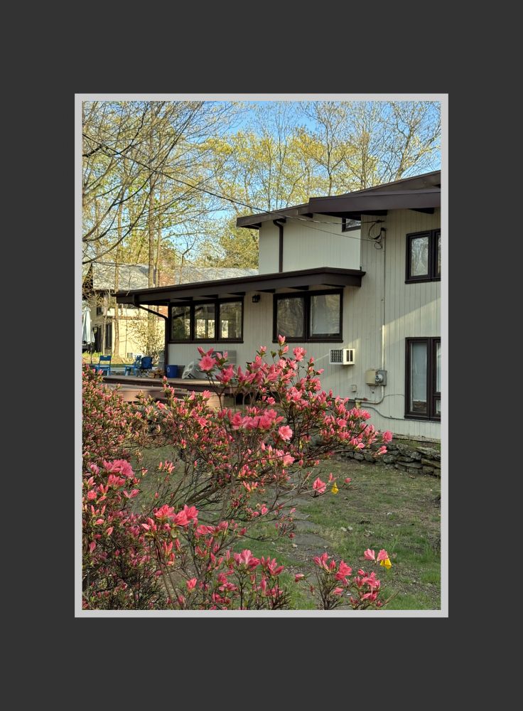 有一天散完步回到家,发现后院有几只野火鸡,于是出去给它们拍了几张。火鸡很警觉,一转眼就钻过稀疏的灌木墙跑到邻居家那边去了。黄昏时分,一片金黄的连翘花加上草地上的落英,煞是好看……
