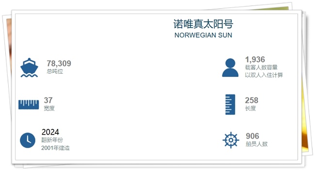 诺唯真邮轮集团(又称挪威邮轮)是世界上第三大邮轮集团,简称NCL(Norwegian Cruise Line),目前有21艘邮轮在服役,未来10年中,将会有17艘超大吨位的邮轮下水。而我们这次乘坐的的太阳号Sun邮轮是刚刚翻新的一艘2001年建造,属于中等吨位邮轮,载客:船员=2:1,属于远洋邮轮中的中偏下。