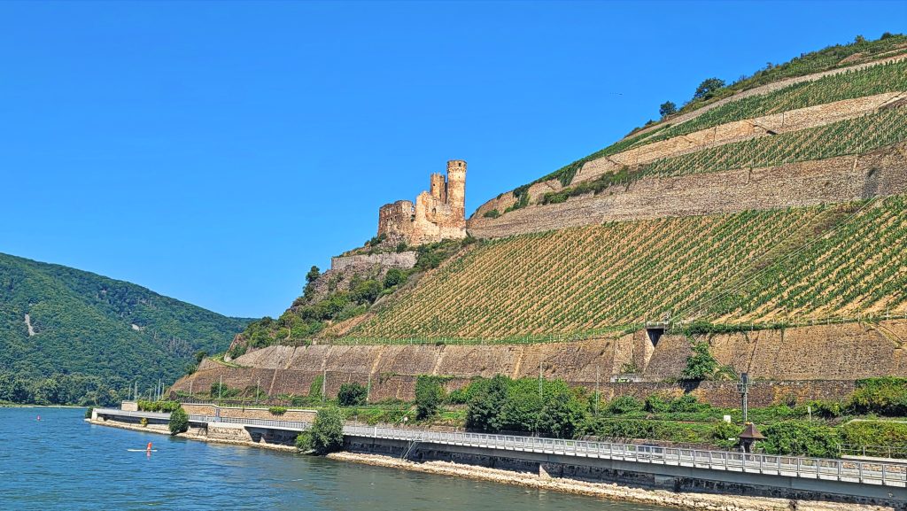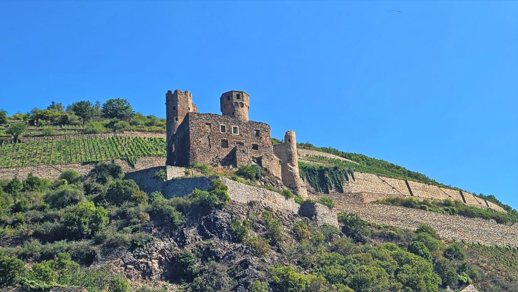 而远处山坡上的埃伦费尔斯城堡遗址(Burg Ehrenfels),则在岁月中渐渐化为历史的剪影。城堡建于公元 1000 年左右,曾是征收关税和税款的重要海关关卡。