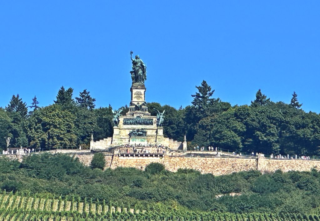 在吕德斯海姆的高处,矗立着庄严的尼德瓦尔德纪念碑 (Niederwalddenkmal) 。这座象征德国统一的雕像,以高举王冠的“日耳曼尼亚”俯瞰莱茵河。