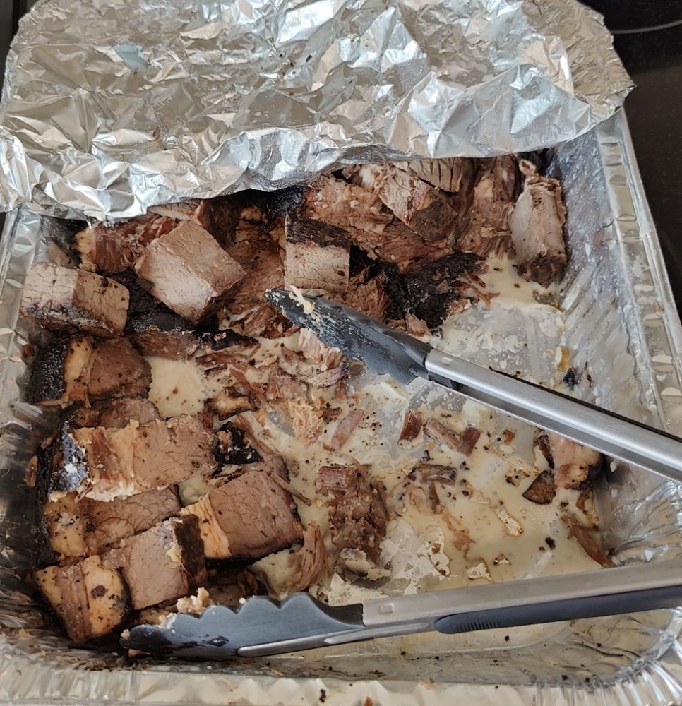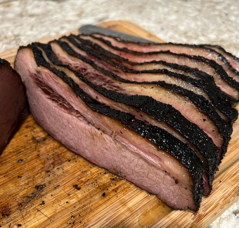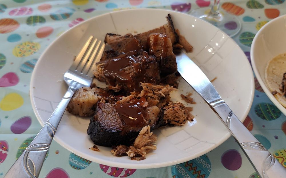 小小阿立非诗不可(Facebook)家庭短信群报告他的烟熏烤战绩:“One of the better briskets I've made. Took 14 hours.”