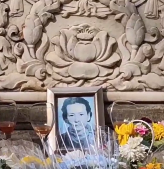 昨日的献花者尤其多,鲜花铺满了墓地。不知是谁还摆放了她的照片和几杯红酒,像是约好了,要陪她坐一会儿。