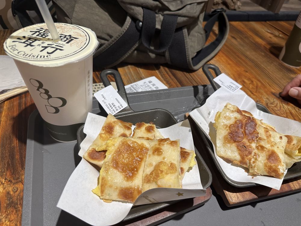 早餐是在一家小吃店解决的,简单点了一份豆浆和蛋饼,朴实却十分可口。