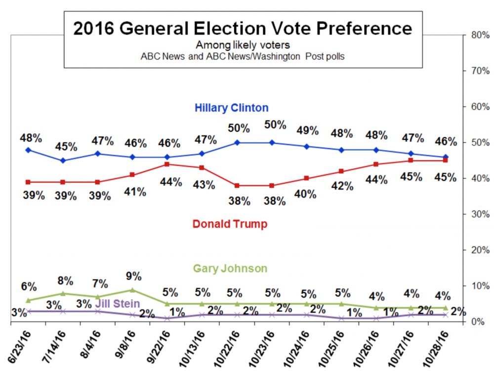 MSM媒体的poll一向是希拉里的阵地和桥头堡。 但是来看看左的不能再左的ABCNEWS/WASHINGTONPOSTPOLL(就是经常希拉里+10以上的那个) 明年ObamaCare上涨消息放出后,poll的变化--截止于FBI公布重启调查前。 在这个最最偏向希拉里的poll,在奥8care明年的保费出来后。她的领先从50:38猛跌到48:44(截止到FBI重新调查邮件门前46:45) 凡事要问为什么,看看O8care的杀伤力在哪里: [阅读全文]