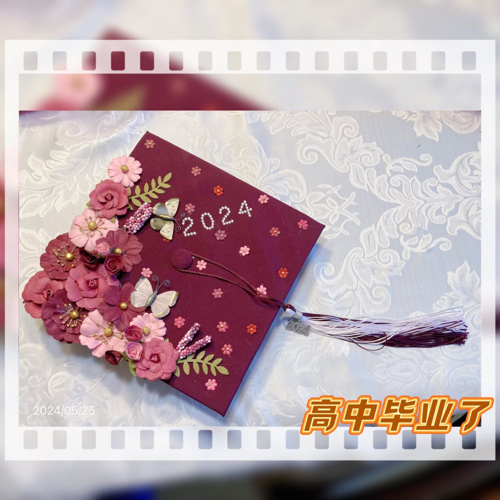 毕业帽装饰好了,给我十八年来捧在手心里的宝贝,我的女儿。