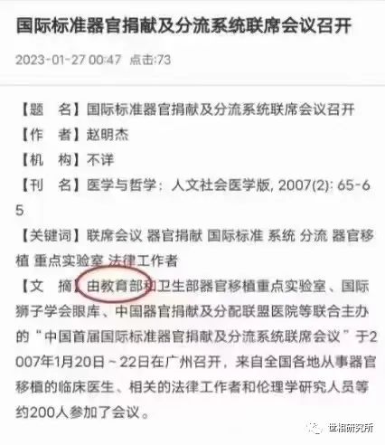 文章来源:世相研究所于2023-01-3008:11:43-新闻取自各大新闻媒体,新闻内容并不代表本网立场!(被阅读29316次)A-AA+相关新闻:中国暴毙年轻人的器官,为何总能快速匹配多人?