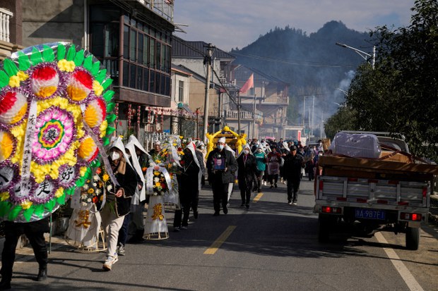 中国放松疫情管制措施之后,染疫人口爆增,家属排队火化亲人遗体。路透社图片