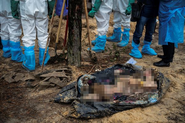 乌克兰官员23日表示,他们从东部城市伊久姆(Izium)附近的乱葬岗中,挖出了447具尸体,里面包含5名儿童,仅有22名是乌克兰士兵,其中30具遗体有遭受酷刑的痕迹,包含脖子上缠绕着[