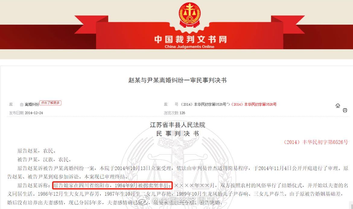 文章来源:中国经济周刊于2022-02-1713:40:40-新闻取自各大新闻媒体,新闻内容并不代表本网立场!(被阅读10518次)A-AA+原标题:江苏徐州丰县法院多次判决被拐妇女起诉离婚案,均不予支持