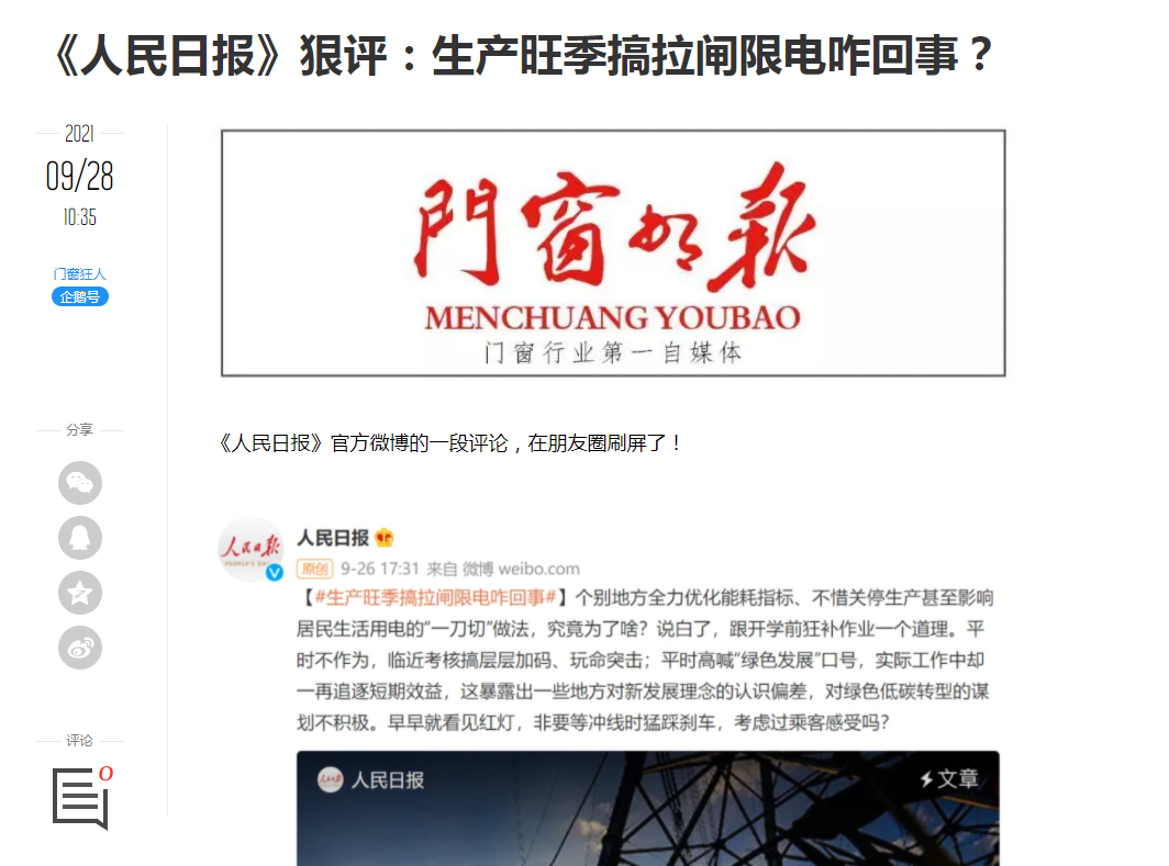 文章来源:海边的西塞罗于2021-10-0100:07:29-新闻取自各大新闻媒体,新闻内容并不代表本网立场!(被阅读20288次)A-AA+“国家队”都发声批评了,有些人还在那儿装摸做样的“品棋”。1各位好,昨天《千年的时光中,我们究竟在何处》一文,随口调侃了几句“拉闸限电反美”的奇葩思路。结果莫名的惹了一些人不开心。有位读者,还是加了我个人号的,发微信质[