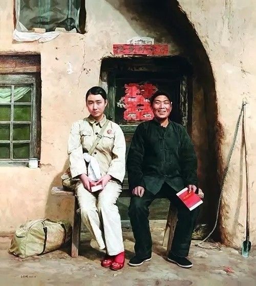 油画《我的前夫》,原名《青春之歌》,是当代知名画家王国斌先生知青系列油画中的代表作。画中的新娘和新郎,端坐在土窑洞前,新娘是位回城绝望的女知青,新郎是村里男人中的幸运儿。他们的婚姻注定被政治操弄,当回城的机会来临,便永生不再见。