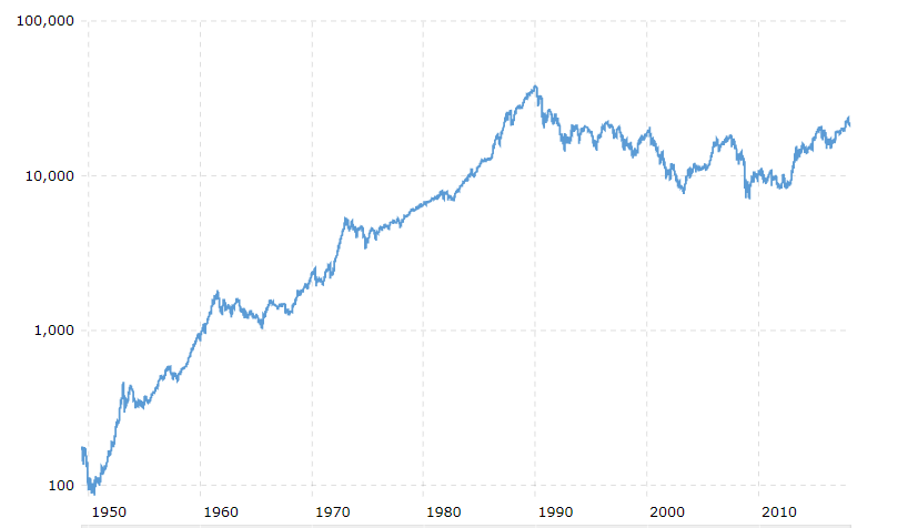 1990年的时候,日本股市多牛叉呀,历史数据显示日本股市是过去若干年全球表现最好的市场。买进去长期持有吧?结果28年后的今天还亏损着[