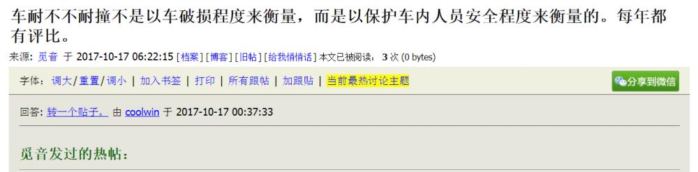 要论汽车安全性,是要以驾驶人的安全为最终目的,不是吗?下面这个帖子说的非常好: