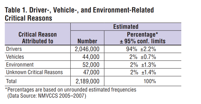 所以想要开车安全,主要还是从人的角度而不是车的角度考虑吧,比如边开车边看手机或打电话、酒驾、超速、疲劳驾驶等等。