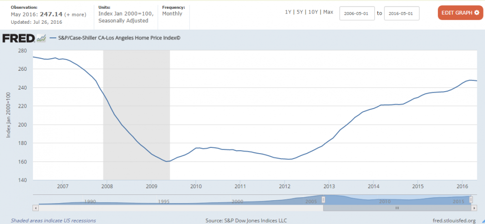 就拿LA来说,房价最近一次下跌了约40%,十年前买的现在还在水下