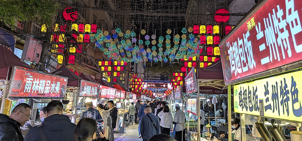 2025回国游:兰州夜市和黄河铁桥今天从乌鲁木齐机场飞兰州。旅行社派一个司机送我们去机场。乌鲁木齐机场从原来的地窝堡改名为天山,大约认为旧名不雅,难上台盘。兰州机场离市区68公里,这大约是中国离市区最远的机场。兰州地广人稀,不知道为什么要把机场建在离城如此之远的地方。兰州机场到市区没有地铁交通,只有大巴。在携程订了6座商务车接机。司机在出口[