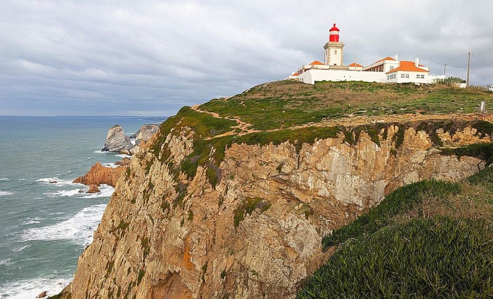 今天最后一个景点是罗卡角(CobaDaRoca)。是整个欧亚大陆的最西端,也是欧亚大陆架的最西端。如果不限于大陆,葡萄牙国土最西点在亚速尔群岛。罗卡角的山崖上建了一座灯塔和一个面向大洋的十字架。十字架下的碑上以葡萄牙语写着Ondeaterraacabaeomarcomeça,“陆止于此、海始于斯”。