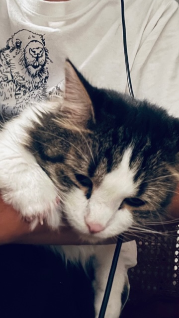 妞妞是我去年给animalshelter捐粮时偶然发现的。在笼中待收养的她隔着铁栏不住地咬着我抓着我,不痛,但力道恰好,使我不忍离开她。怎么办好呢,笼中那么多可爱又可怜的毛娃我各个儿想带走,但家中已经有了老大了,所以只能带一个走呀。不经意间我发现了从内疚感中解脱出来的理由:妞妞先天畸形,右爪部分残[