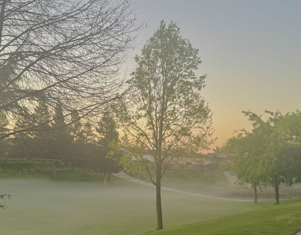 今天有晨雾,特别美,所以还停下来拍照,结果拍照的时间比跑步的时间还长,汗。。。