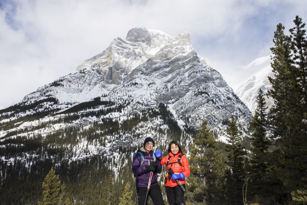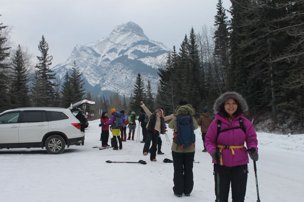 清晨9点钟,山友队的4辆车聚集GrottoCreek停车场。这是一个少有的山中的气温比城里还高5度的完美登山日(卡城是-13c.山中是-8c)。
