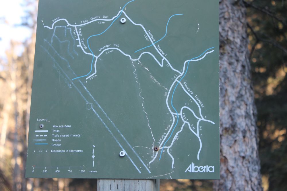 可能因为这一天不是周末,进山的人很少。到了Upperlake停车场,只见那里只停有一部车子。一直到爬上Rawson湖,我们都没有遇到什么人。从Upperlake到Rawsonlake要爬2.7公里的陡坡,这条路我们以前走过3次,分别是在冬天,春天和夏天,而现在是深秋,这一次看到路上新增了几个牌子,标明这条山路有什么野兽,山花和鸟类[