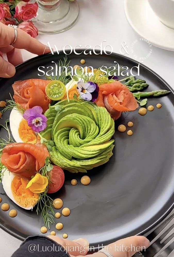 1)偶然看到一个美食博主做的牛油果和烟熏三文鱼沙拉。摆盘很小资很好看。