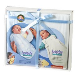 Swaddleme®AndBeddiebyeGiftSetWithSmallMicrofleeceIvoryBeddiebyeAndBlueGingham100%FlannelCottonSwaddleme