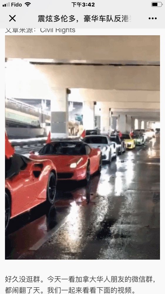 最近香港两个多月的市民抗议活动牵动了全世界的华人。在远离香港半个地球之远的多伦多,在8月17日也发起了一个游行,一些声援香港市民的民众在多伦多旧市政大厅前集合,他们申请的合法游行集会因中国留学生的干扰而被迫取消。这场对峙中最吸引人们眼球的是小留学生的豪华车队的闪亮登场:这些豪华跑车插着五星红旗,咆哮着冲出来,彰显出厉害国冲天的牛气。让[