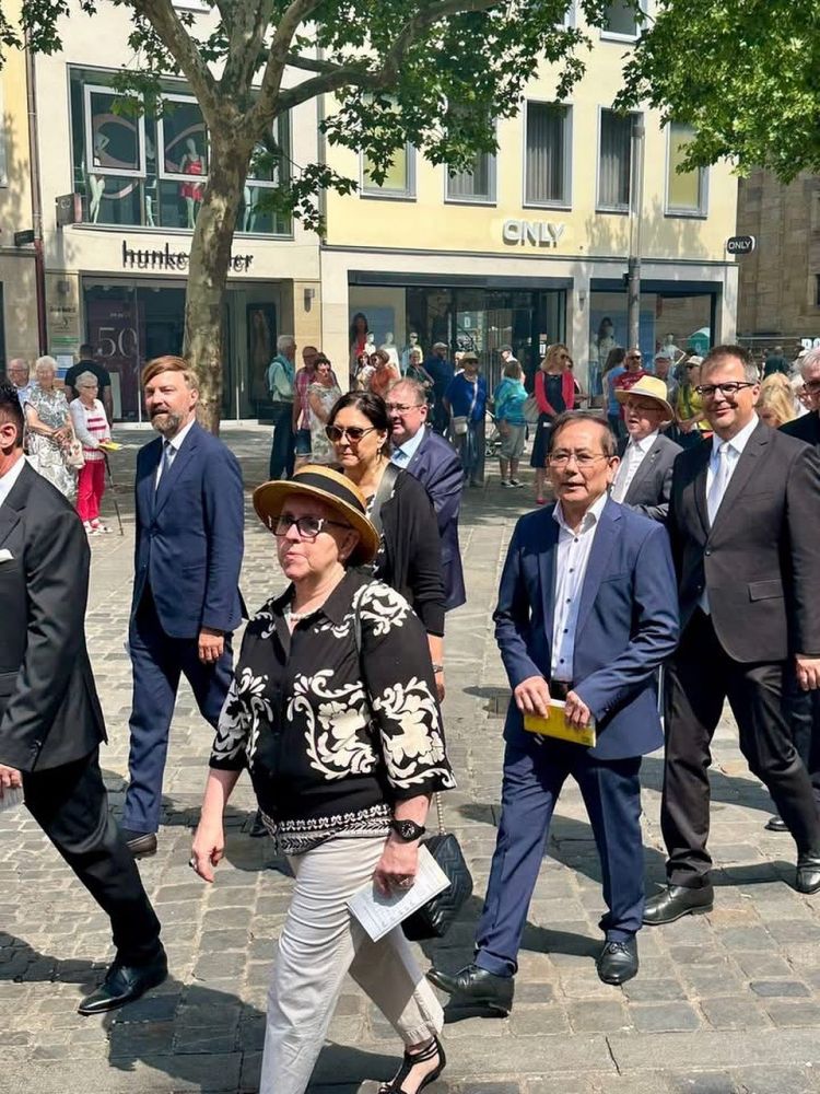 谢盛友以基督教社会联盟党成员、市议员身份参加巡游。基督教联盟党以神的旨意治理国家、建设家园。我们在巡游路上宣扬神的道,恳求上帝赐给我们政治智慧,按照神的旨意完善地上社会系统,造福公民。