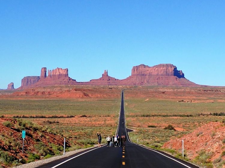 在去ArizonaPage的163公路有阿甘(ForrestGump)和追随者们停止跑步的景点。很久以前我就为这笔直的公路和隆起的山丘背景照片所吸引。她有一种难以形容的美!这次为了清晨太阳最佳光线角度。特地先从Bluff开车到这里拍照。有一群不知从何而来的小青年聚集在公路上模仿电影情景。然后我们调头去GoosenecksStatePark看被河流切出来的鹅颈湾。门票每车$5。我的相机不给力或者是地点[